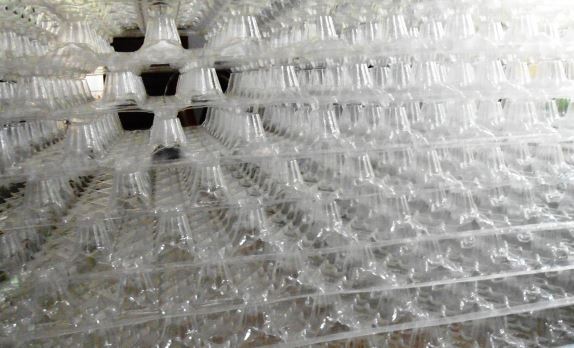 - Bước 3: Lắp đặt các khối giá thể đã dán vào bể sinh học sao cho tạo thành các khối xếp chồng lên nhau, chiều rỗng của giá thể đặt dọc bể để khí và nước thoát lên dễ dàng. Chiều cao của giá thể tùy theo thiết kế từ 1,0m – 2,0m